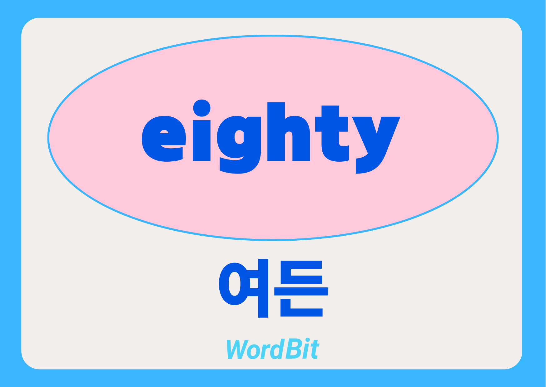 안녕하세요, 무료 잠금화면 영어공부 앱 워드빗입니다. 😊 영어 단어 eighty의 뜻과 예문, 용법에 대해 설명드리겠습니다. 📘 eighty [ˈeɪti] ✅ 뜻 1. 80 (숫자) – 숫자
